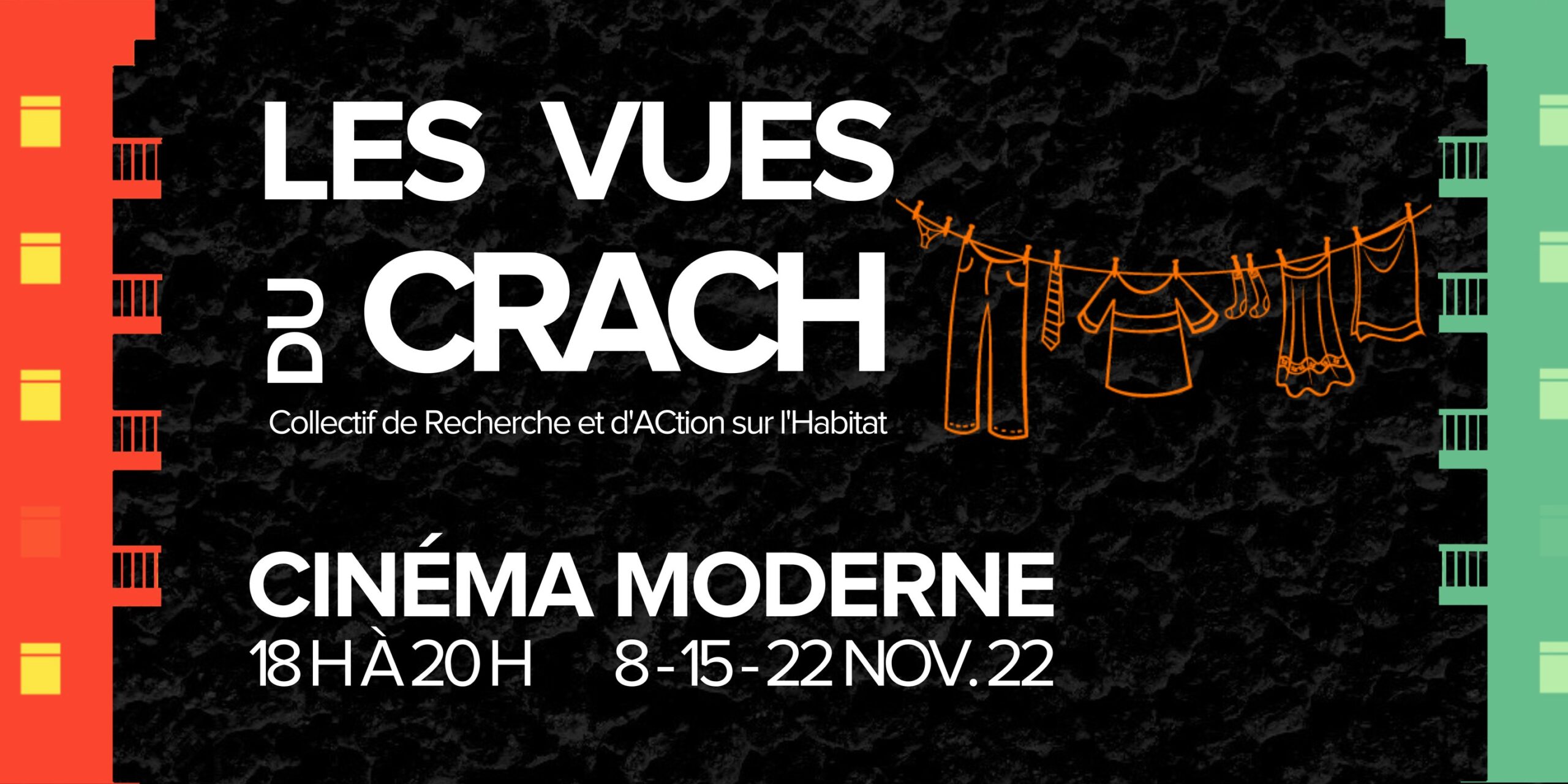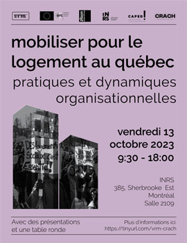 Le Collectif de Recherche et d'ACtion sur l'Habitat vous invite à participer à une série de projections-débats dans le cadre du festival documentaire Les Vues du CRACH, qui aura lieu les mardi 8, 15 et 22 novembre 2022 de 18h à 20h au Cinéma Moderne. Les projections seront suivies de discussions avec les réalisateur.rice.s et ... Read moreLes vues du CRACH: HOMA ou Hochelaga et la clefs des friches